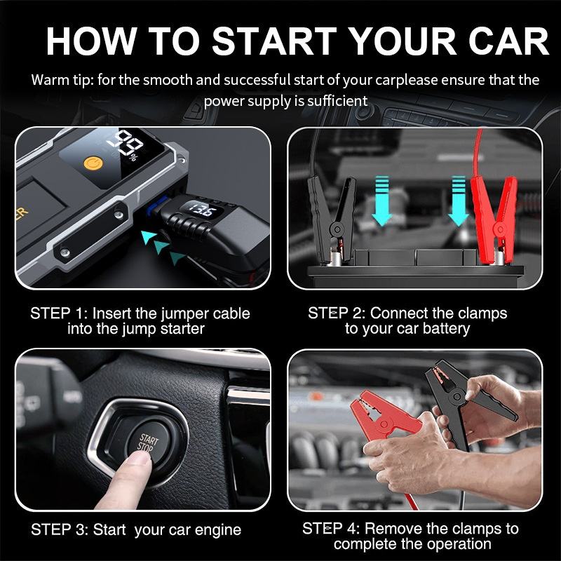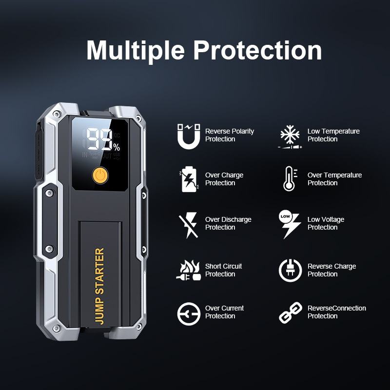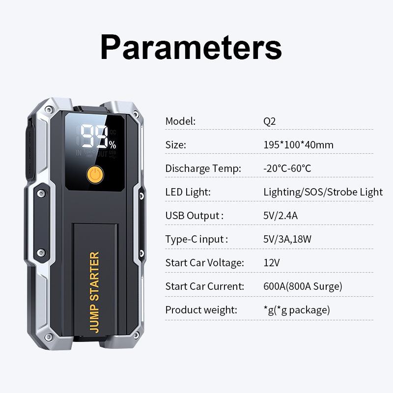Avviatore di Emergenza Portatile 45W per Auto con Luce LED, Dispositivo di Accensione Versatile per Camion e Moto, Power Bank per Uso Auto in Emergenza