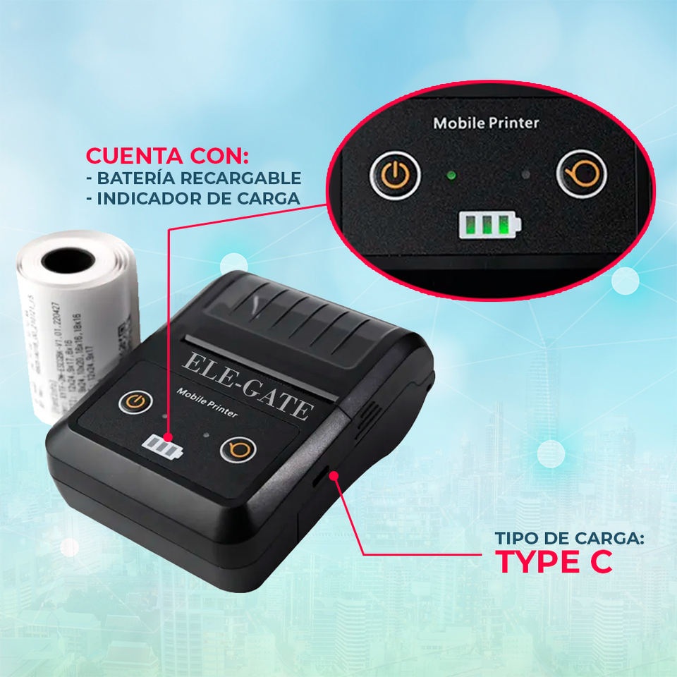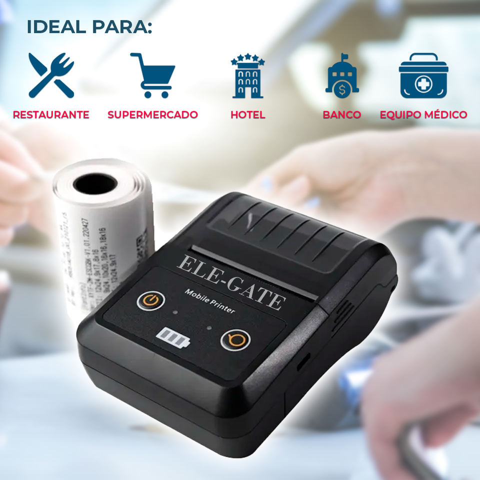 ELE-GATE Stampante Termica Portatile da 58mm per Ricevute, Bianco e Nero, Risoluzione 203dpi, Materiale Plastico, per Etichette Adesive Portatili