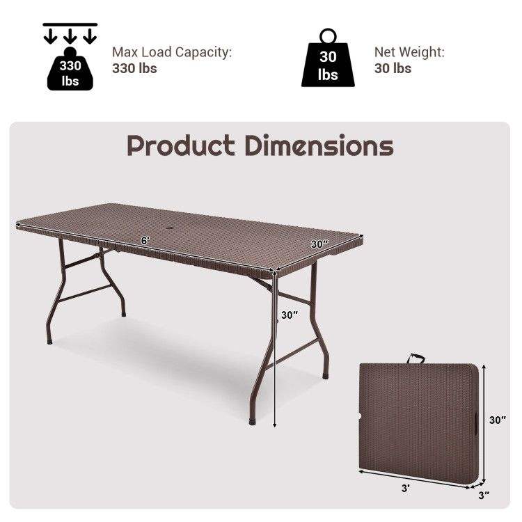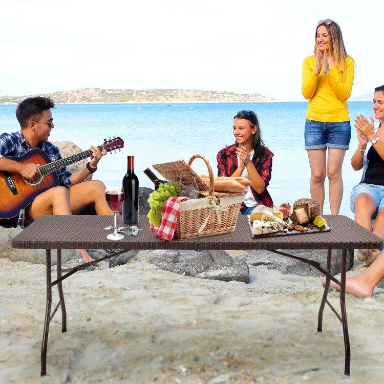Tavolo Pieghevole in Rattan da 6 Piedi con Maniglia per il Trasporto, per Uso Esterno