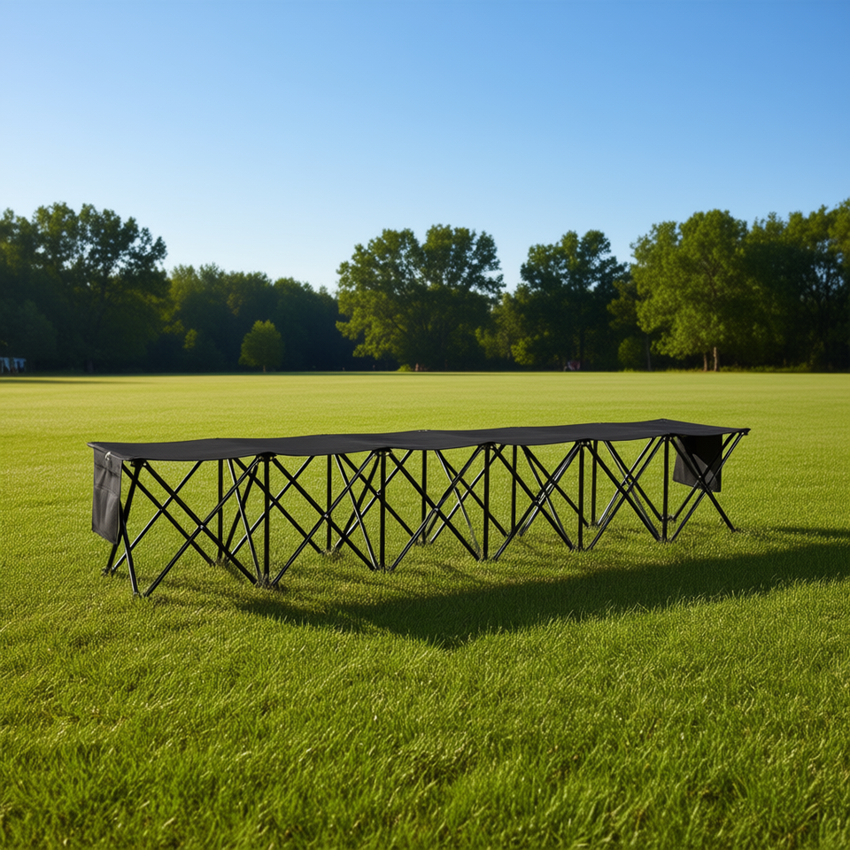 Panca sportiva pieghevole portatile a 6 posti, sedia da campeggio per esterni con telaio in alluminio e borsa per il trasporto, per giardino e uso all'aperto