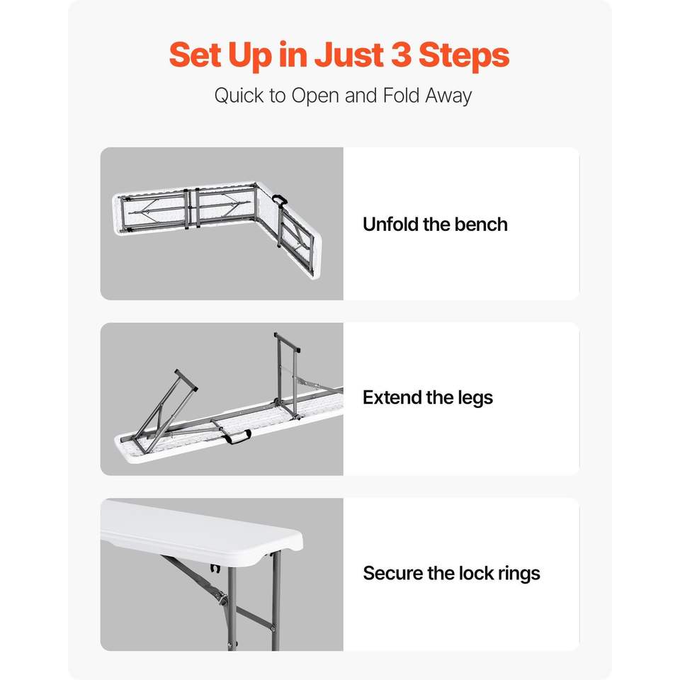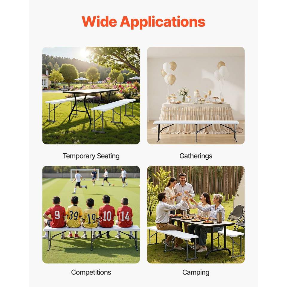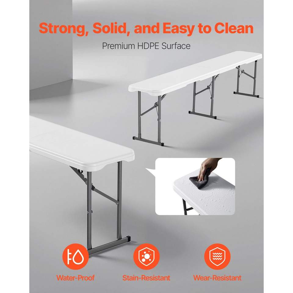 Panca Pieghevole Portatile da 6 Piedi con Seduta Liscia in HDPE, Panca in Plastica per Interni/Esterni, Ideale per Picnic, Feste, Campeggio e Pranzo