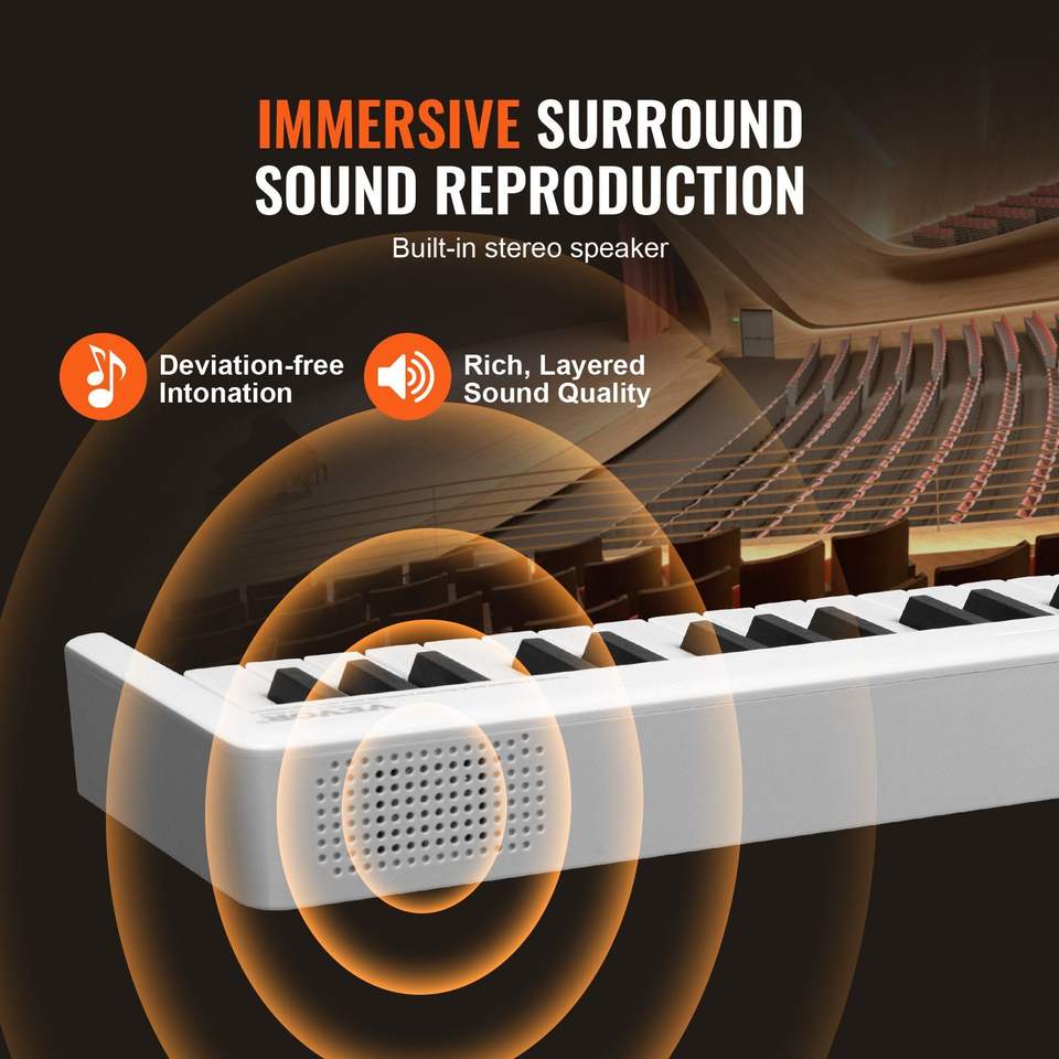 Portable 61-Key Folding Keyboard for Bluetooth MIDI White Piano Foldable Design
