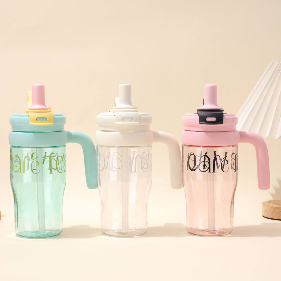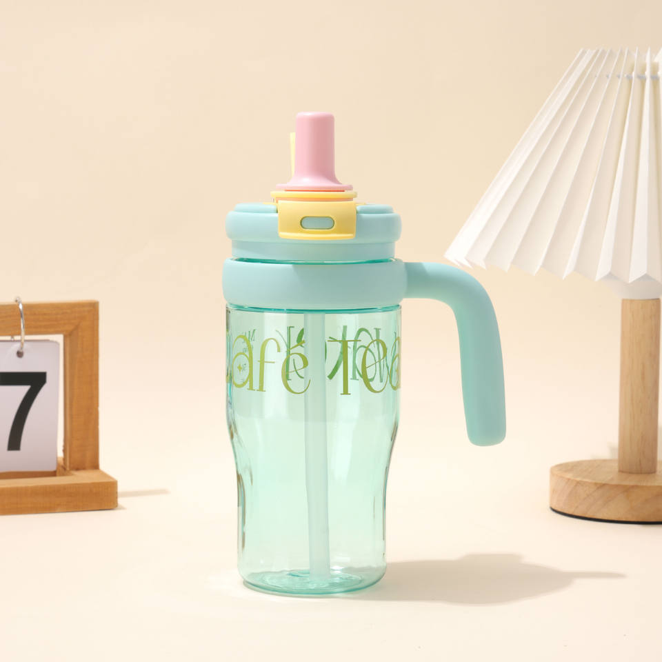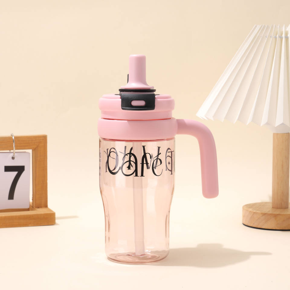 Borraccia Portatile da 650ml per Acqua al Limone Estiva, con Grande Manico, Logo Personalizzabile, Trasparente, per Tè alla Frutta, Bevande Femminili, Senza BPA, Anti-perdita, Sportiva