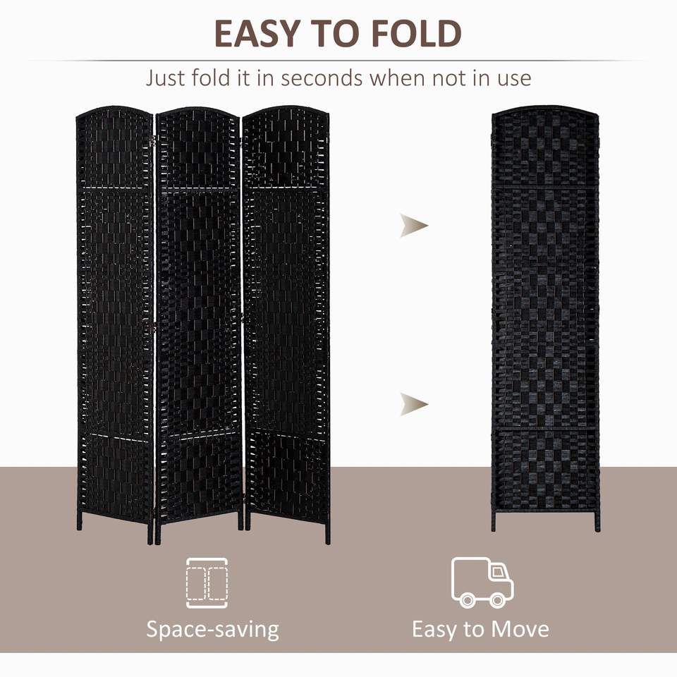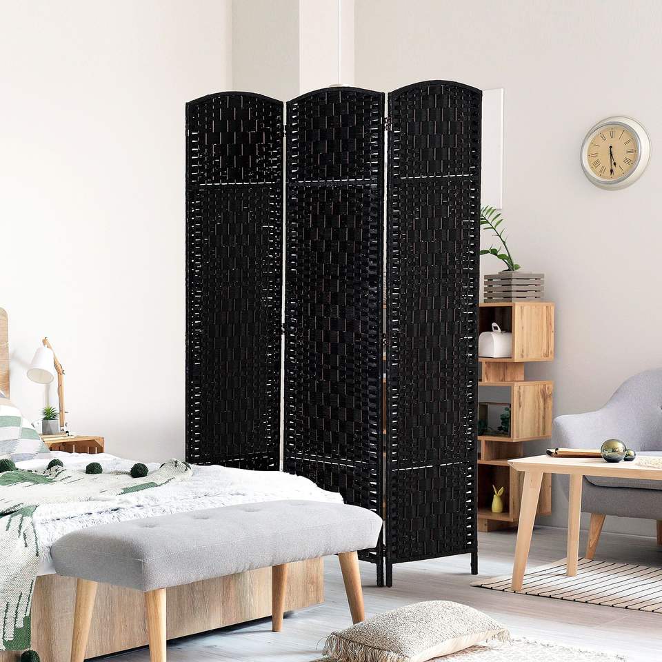 Divisorio Pieghevole Portatile a 3 Pannelli Alto 1,8 m in Vimini Intrecciato per Camera da Letto, Ufficio e Casa