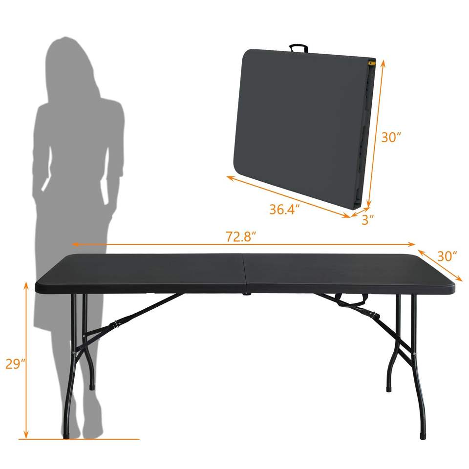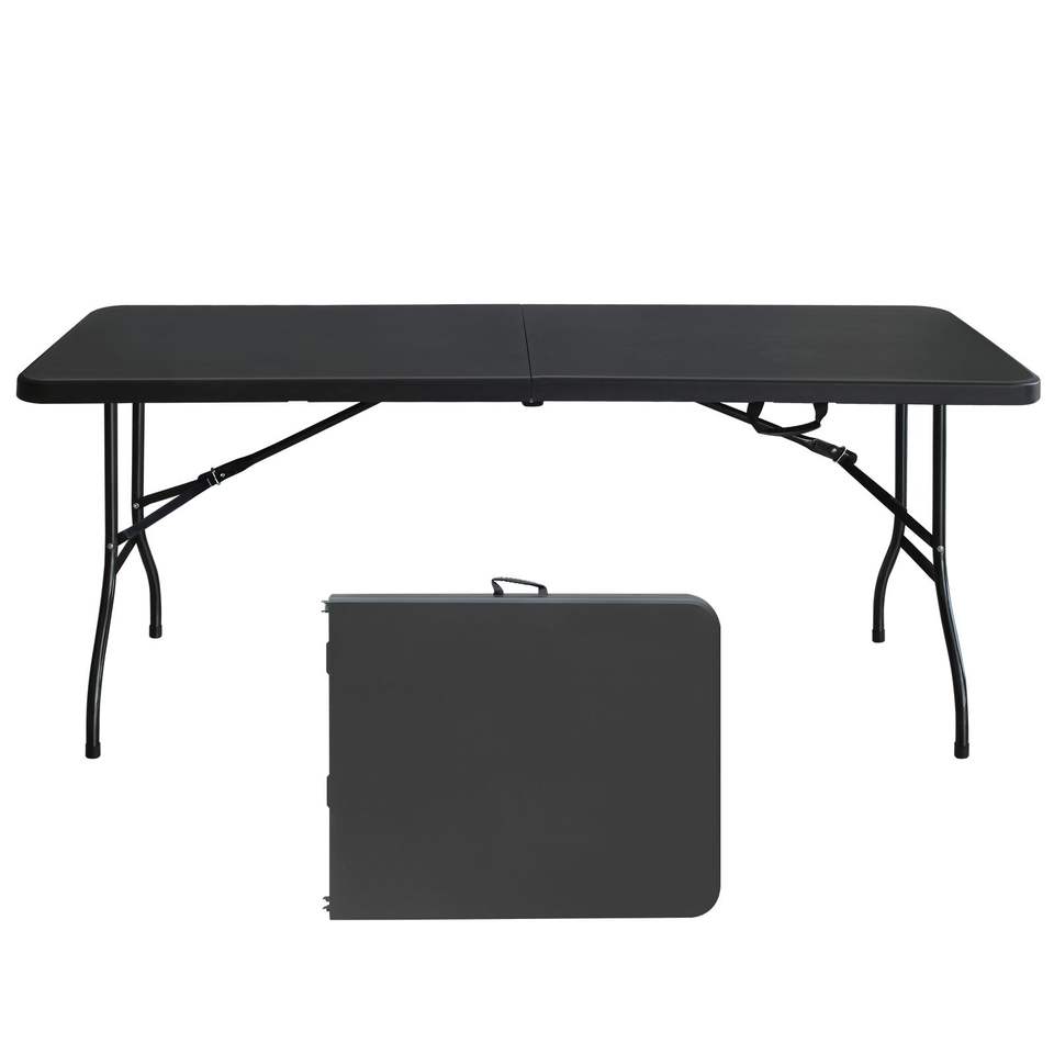 Tavolo Pieghevole Portatile Nero da 6 Piedi, Alta Capacità di Carico, Tavolo in Plastica per Campeggio, Picnic e Feste