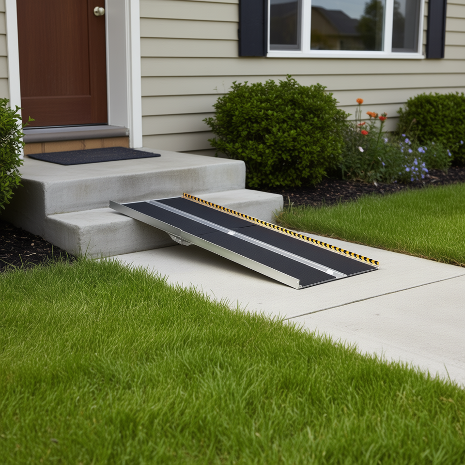 Rampa per Sedia a Rotelle in Alluminio 7 Piedi, Capacità 800 Libbre, Antiscivolo, Pieghevole per Scale Domestiche e Marciapiedi, Rampa Accessibile