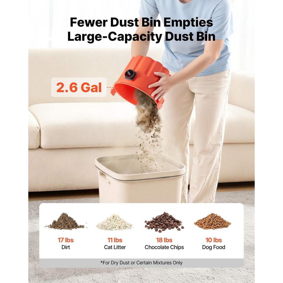 Aspirapolvere Portatile da 800W per Liquidi e Solidi, 2.6 Galloni, 2.5 HP di Picco, con Vari Ugelli, Tubo da 1.25 Pollici x 4 Piedi
