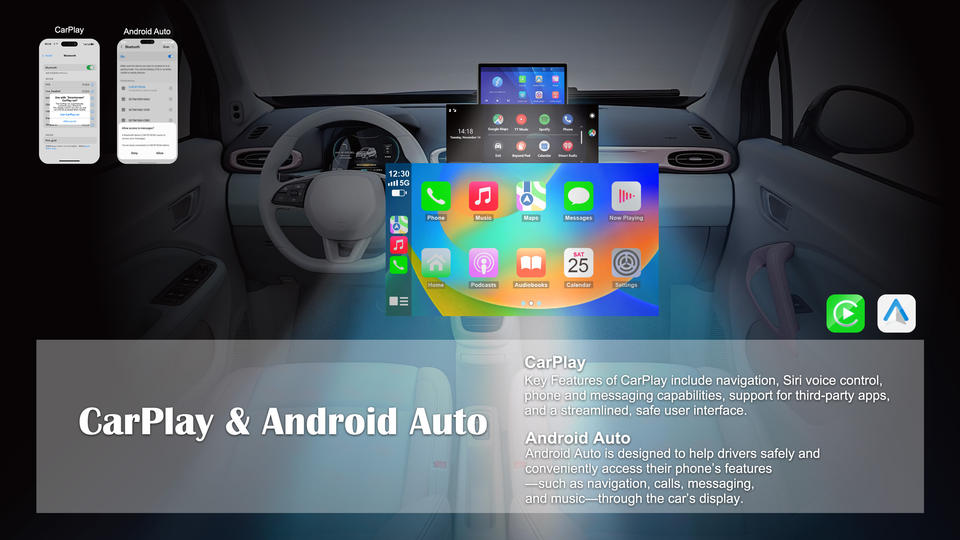 Schermo Auto Portatile da 9 Pollici con Navigazione Rotante, Carplay Wireless, Android Auto, Funzione FM e Registrazione Video