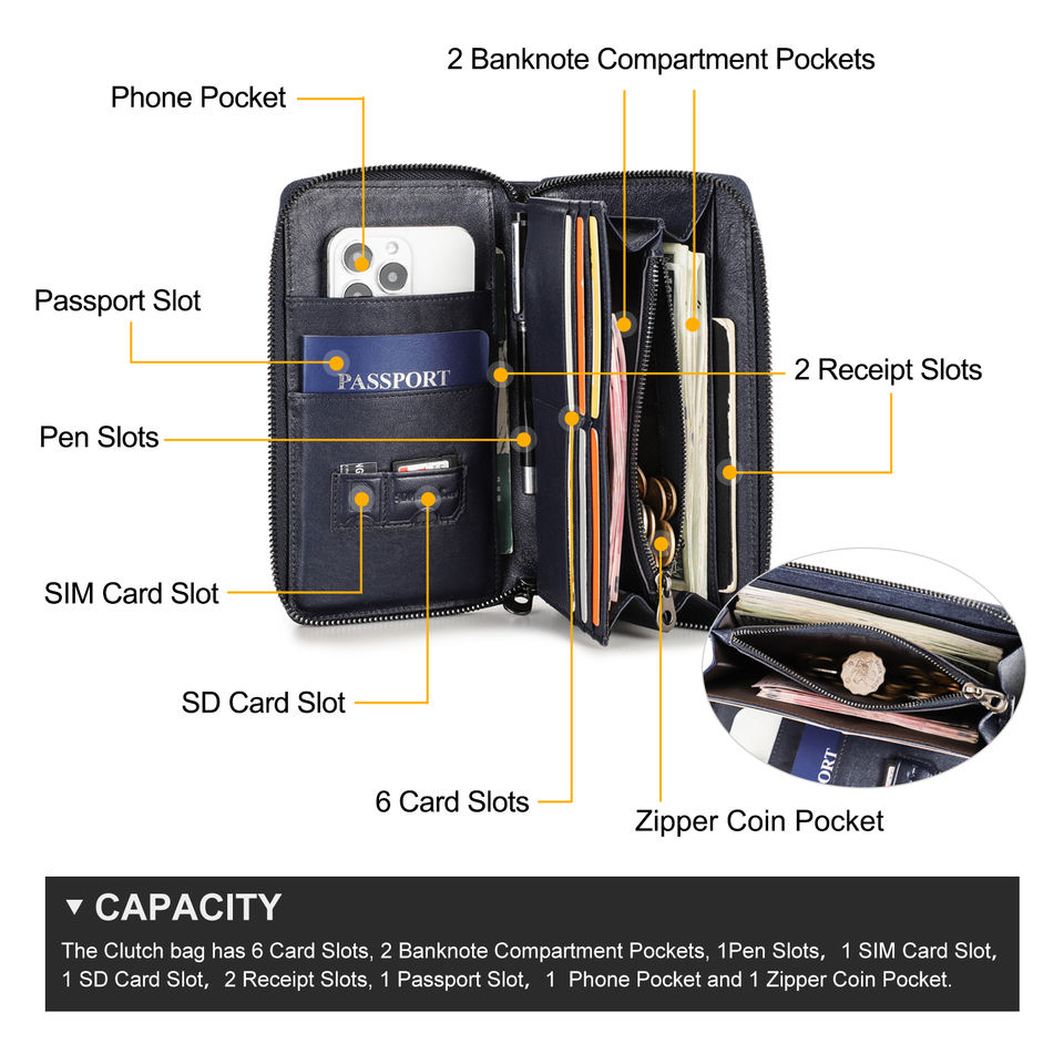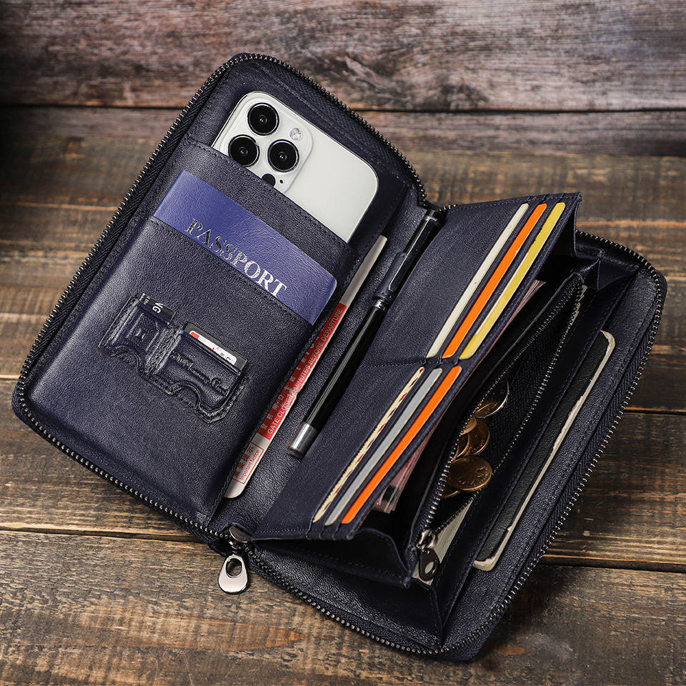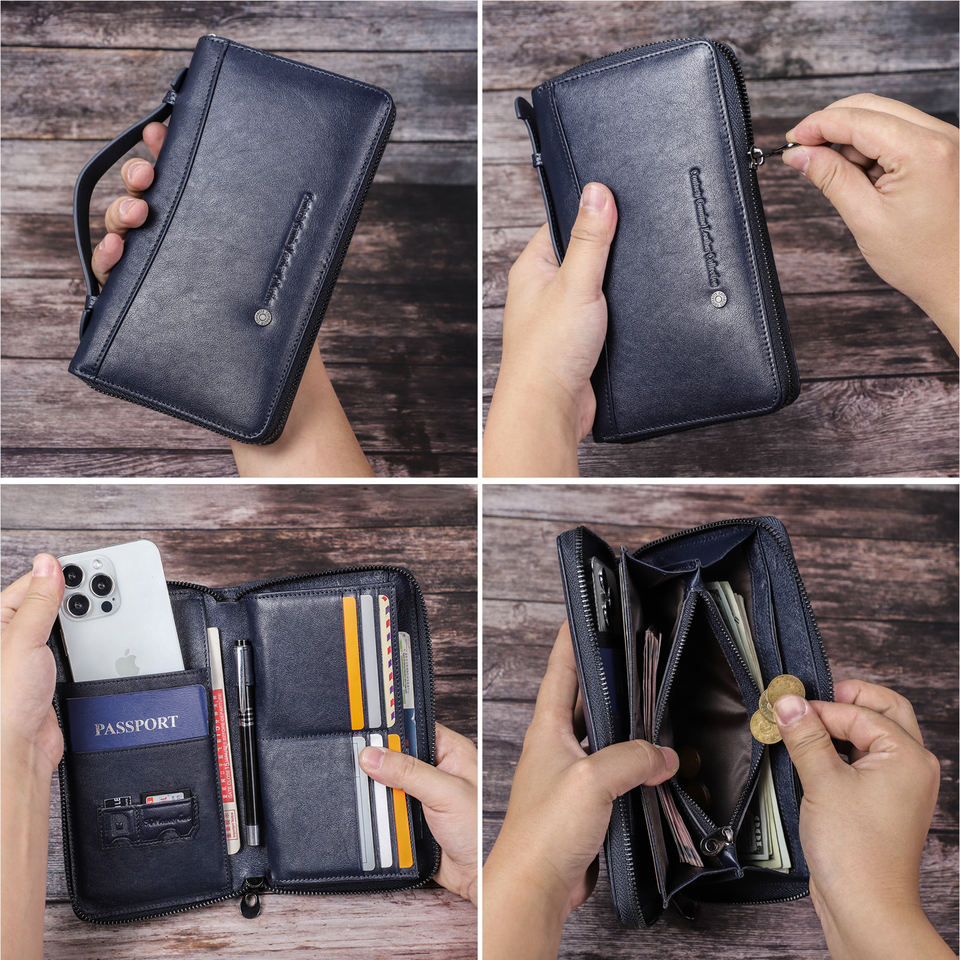 Portable All in One Clutch Wallet Men Genuine Leather Travel Wallet With Card Pen Phone Passport Holder Wallet for Men
