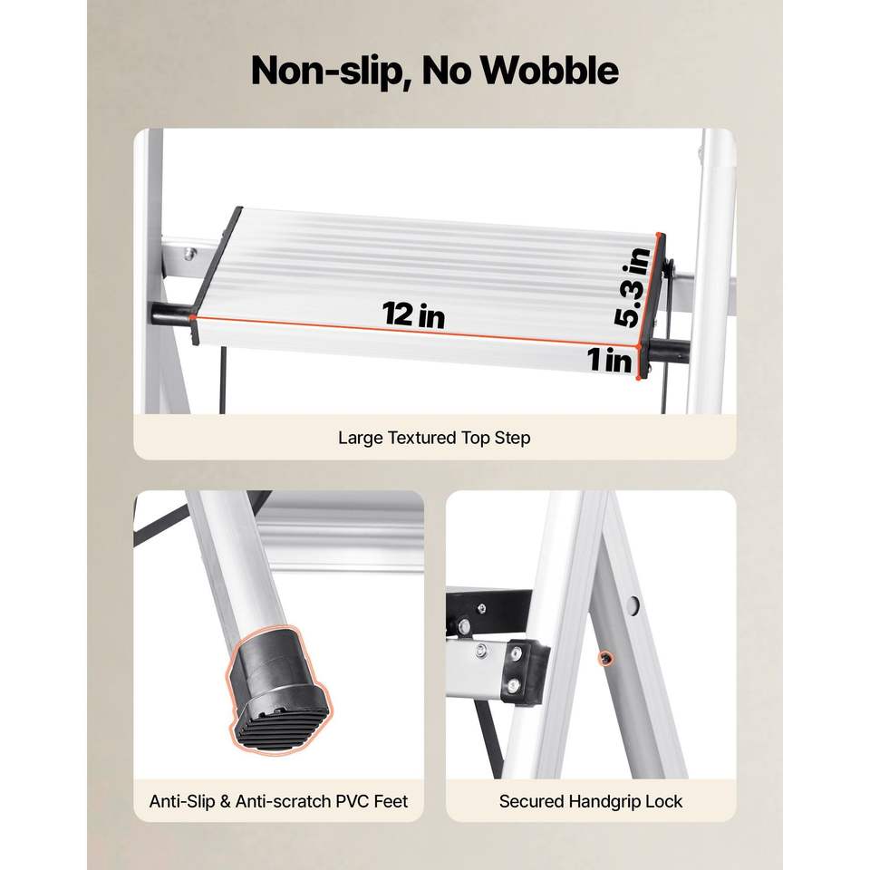Scala Portatile in Alluminio a 4 Gradini con Pedale Antiscivolo e Impugnatura Confortevole, Design Pieghevole Largo, Capacità 330 Libbre