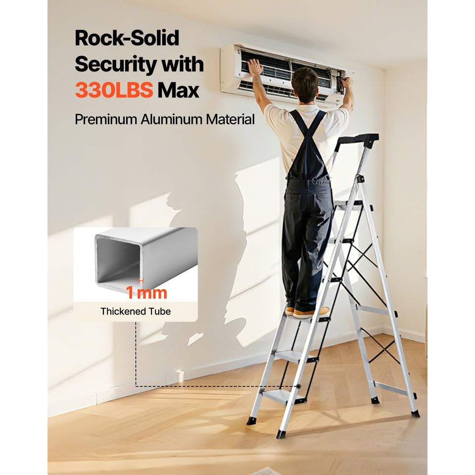 Portable Aluminum 6-Step Folding Ladder with Anti-Slip Pedal and Comfort Handgrip 330 Lbs Capacity Wide Stool Design