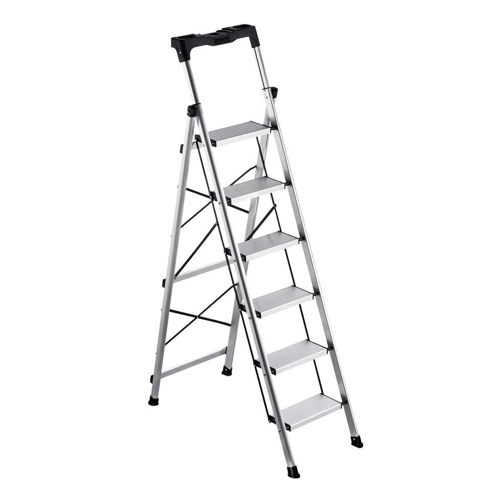 Scala Pieghevole Portatile in Alluminio a 6 Gradini con Pedale Antiscivolo e Impugnatura Confortevole, Capacità 150 kg, Design con Sedile Largo