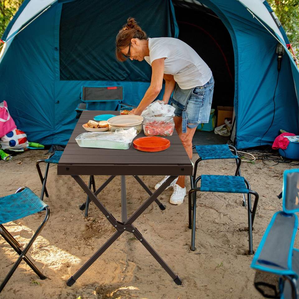 Tavolo da Campeggio Portatile in Alluminio per 4-6 Persone con Borsa per il Trasporto