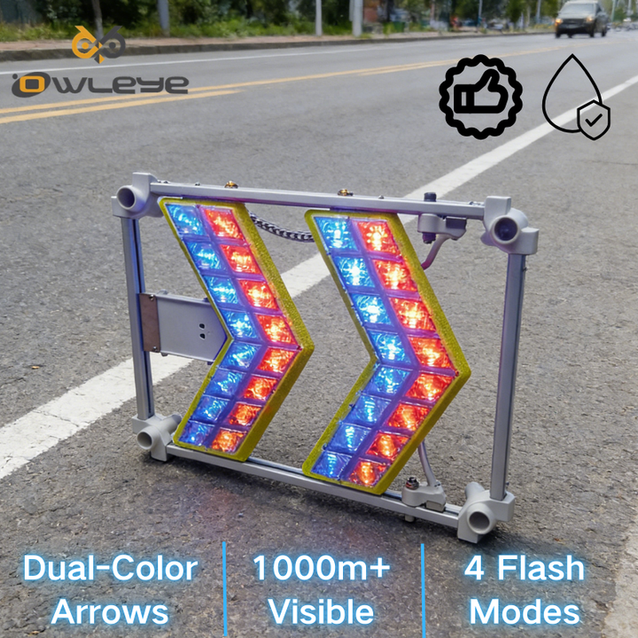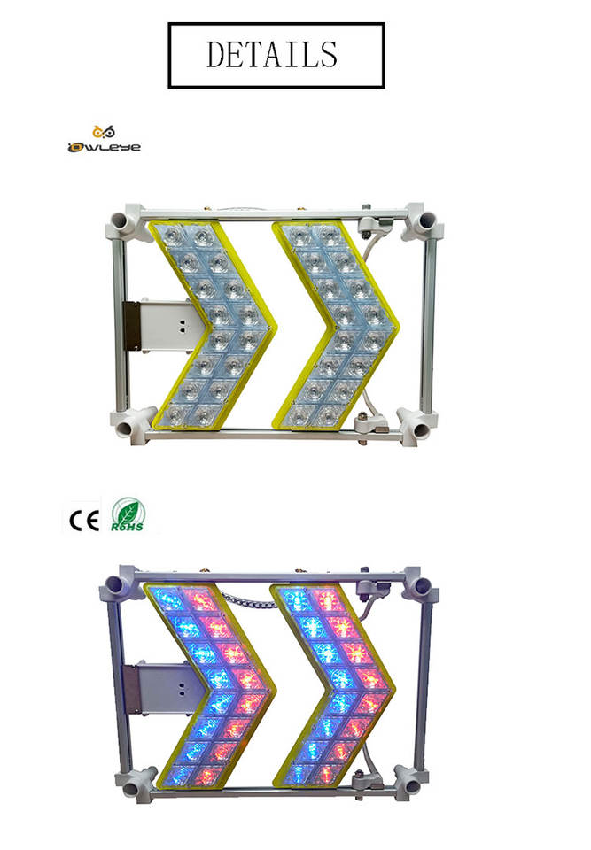 Pannello a Freccia LED Portatile a Batteria, Guscio in Metallo, Grado di Protezione IP66, Riflettente Prismatico ad Alta Intensità per Traffico Temporaneo