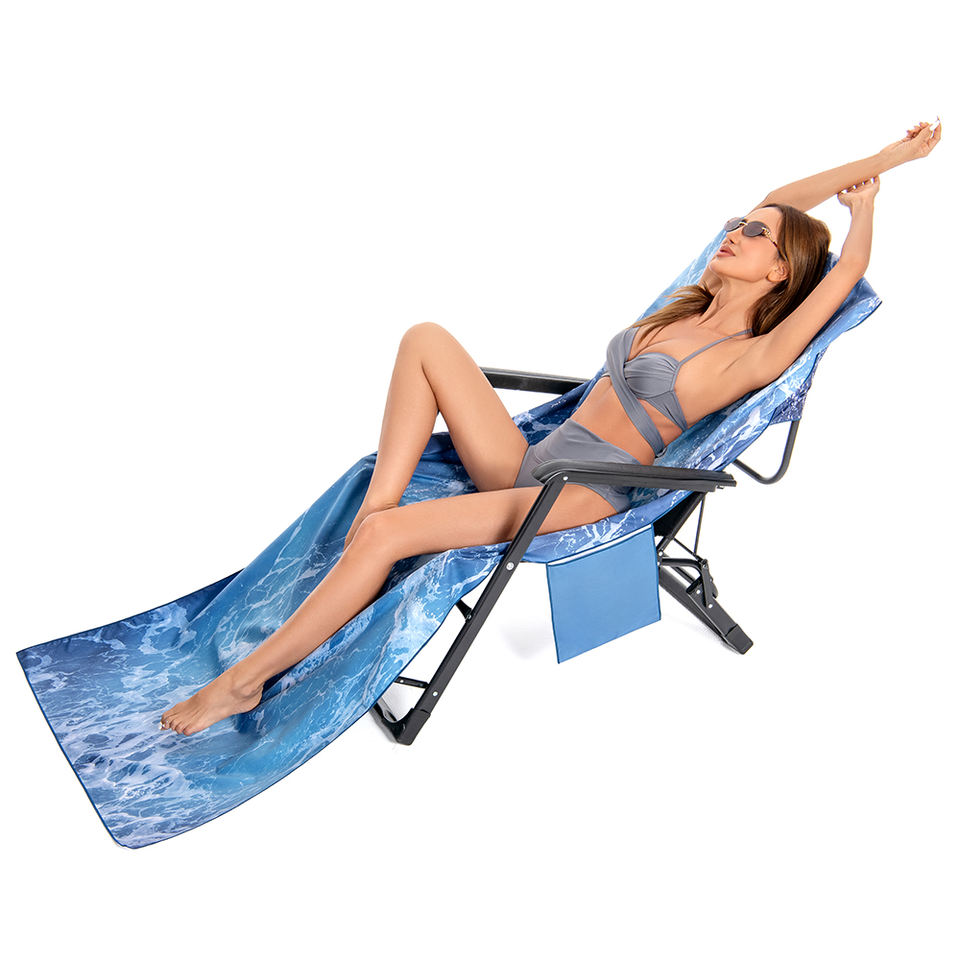 Copri-sedia da spiaggia portatile con tasche laterali, design slip-on per sedie a sdraio da esterno, accessorio da spiaggia morbido e assorbente