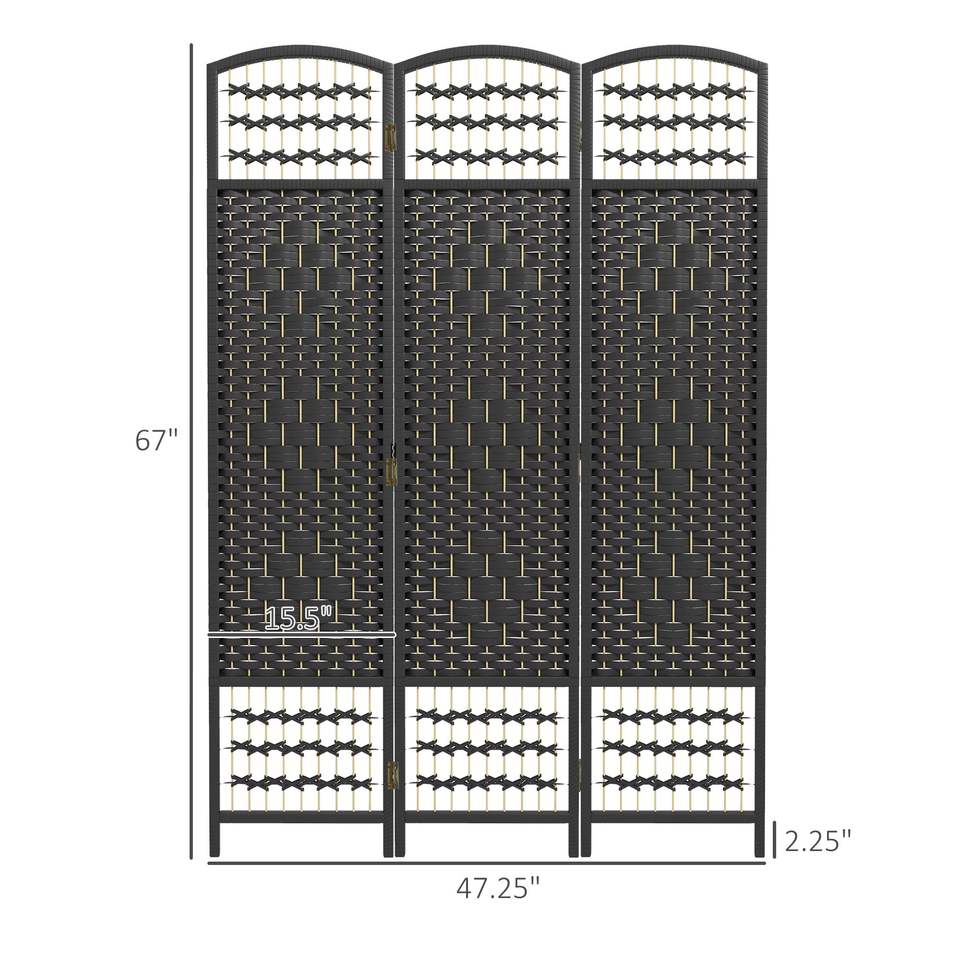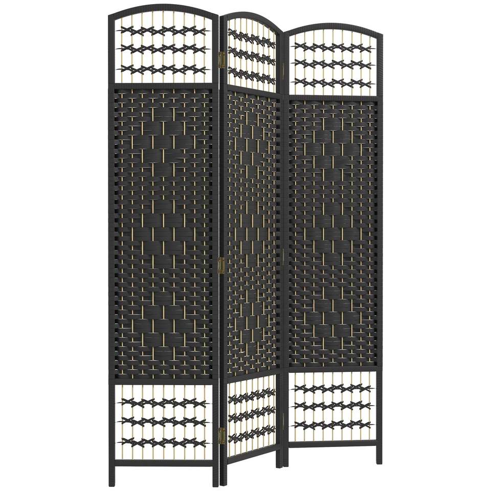 Divisorio Pieghevole Portatile a 3 Pannelli in Fibra Nera per Privacy in Casa o Ufficio