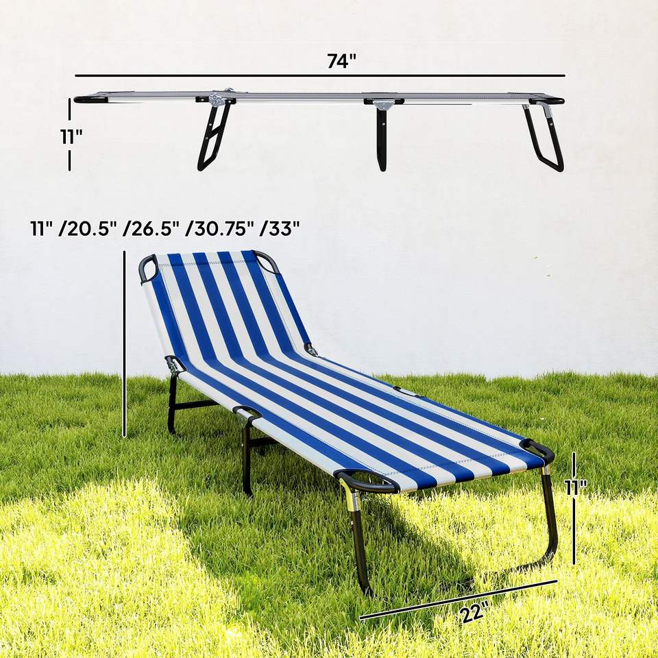 Lettino Prendisole Pieghevole Portatile Blu e Bianco Regolabile per Spiaggia o Campeggio