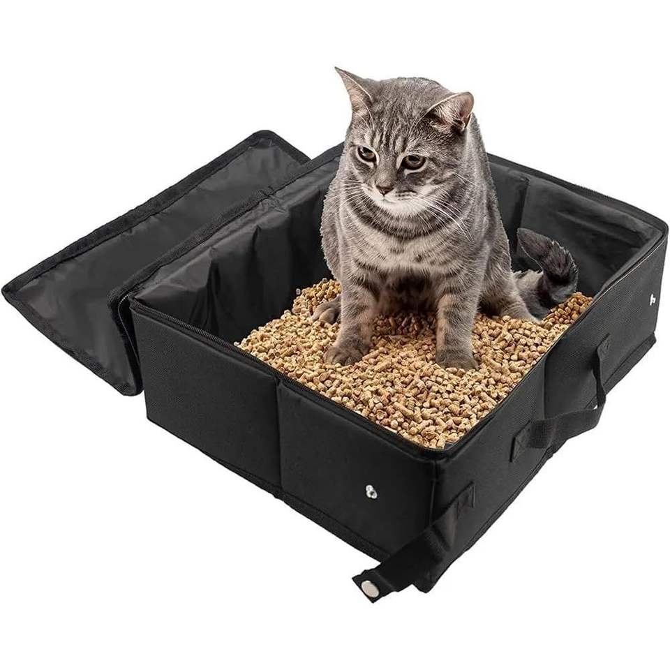 Lettiera Portatile da Viaggio per Gatti con Coperchio Zip, Design Pieghevole e Facile da Trasportare, Impermeabile, Senza Perdite o Odori