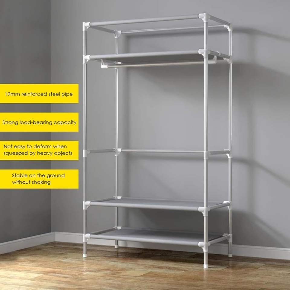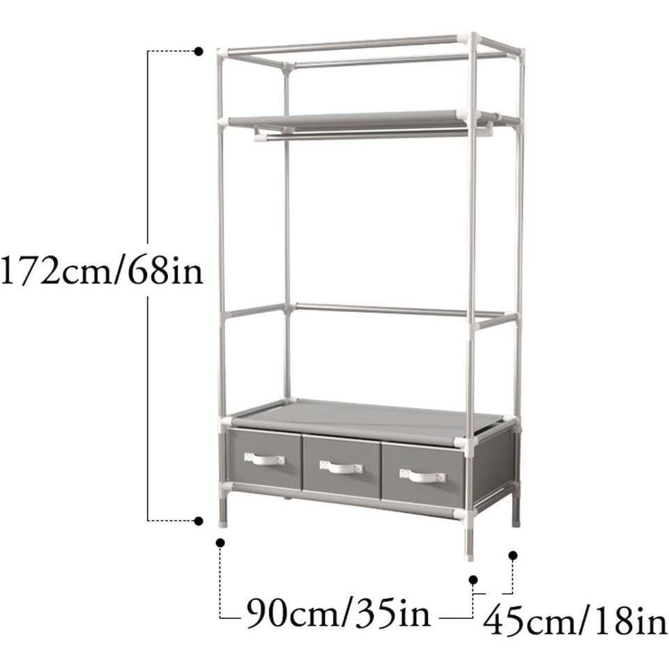 Portable Closet Organizer 3 Drawers Rolling Door 67H X 35.4W X 17.7D Inches Freestanding Wardrobe Cabinet for Hanging Clothing