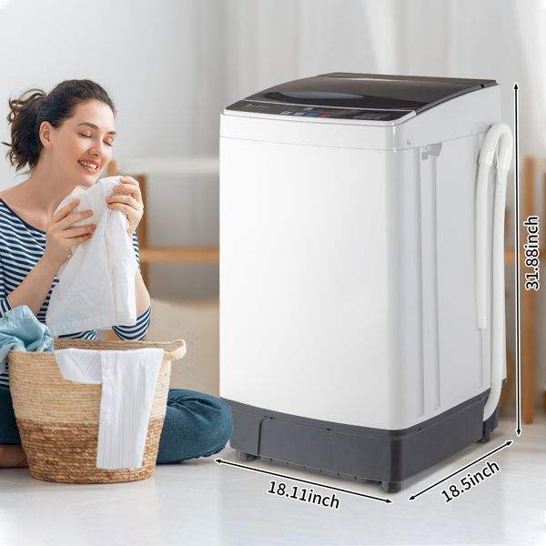 Portable Compact Top-Load Washer 10 Programs 8 Water Level Selections 17.8 Lbs Capacity Full-Automatic Washing Machine LED