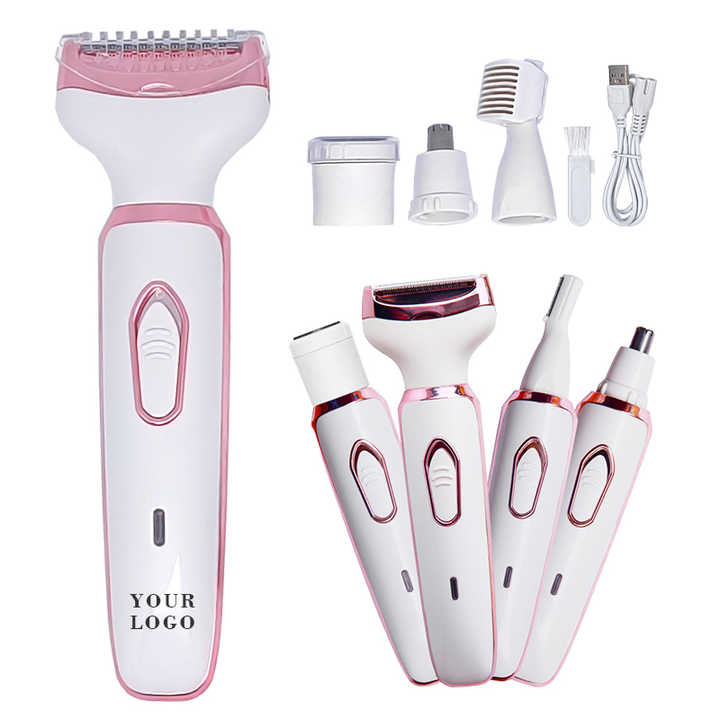 Portable Cordless 4-in-1 Electric Razor for Women Painless Shaver Bikini Trimmer Detachable Head for Face Brows Nose-Household