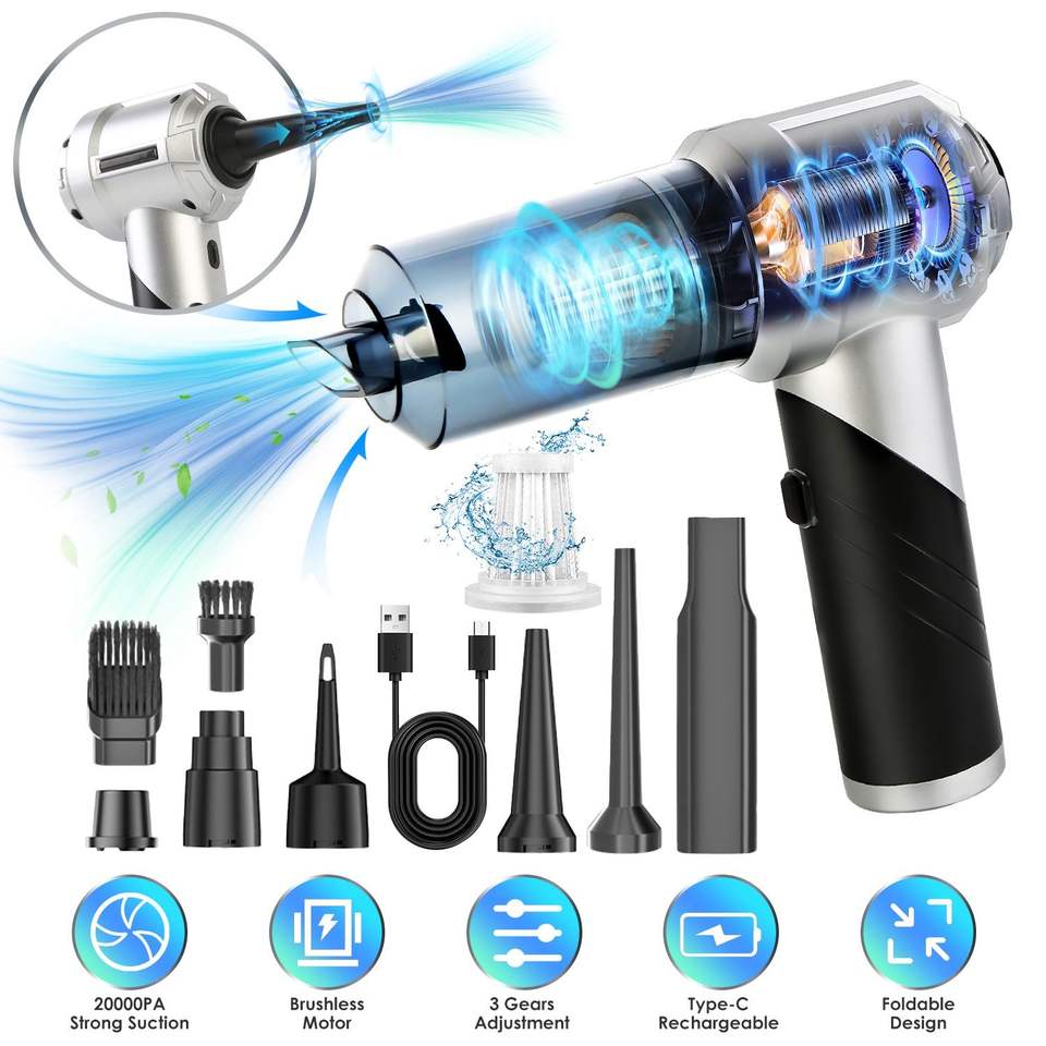 Aspirapolvere Portatile Senza Fili per Auto, 20000PA di Aspirazione, Motore Brushless, 3 Livelli, Ricaricabile con USB Tipo C