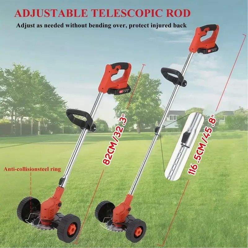 Portable Cordless Electric Lawn Mower High Capacity Weed Wacker 3 Blade Types Multiple Accessories for Garden Yard Maintenance