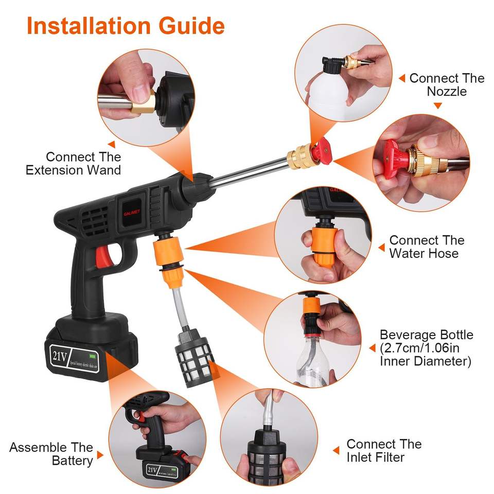 Idropulitrice Elettrica Portatile Senza Fili 363PSI, Spruzzatore ad Alta Pressione 12000mAh 21V, Pulitore per Auto
