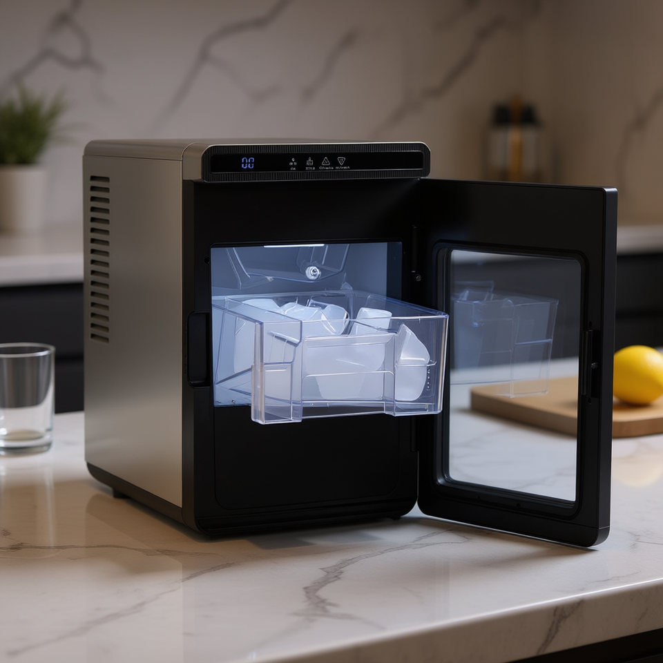 Fabbricatore di Ghiaccio Portatile da Banco, 10 kg al Giorno, con Cassetto Autopulente, Cubetti Grandi Quadrati, Elettrico in Acciaio Inox per Cucina