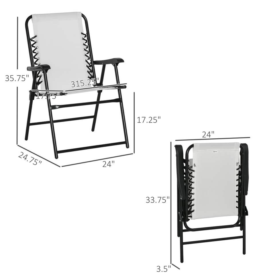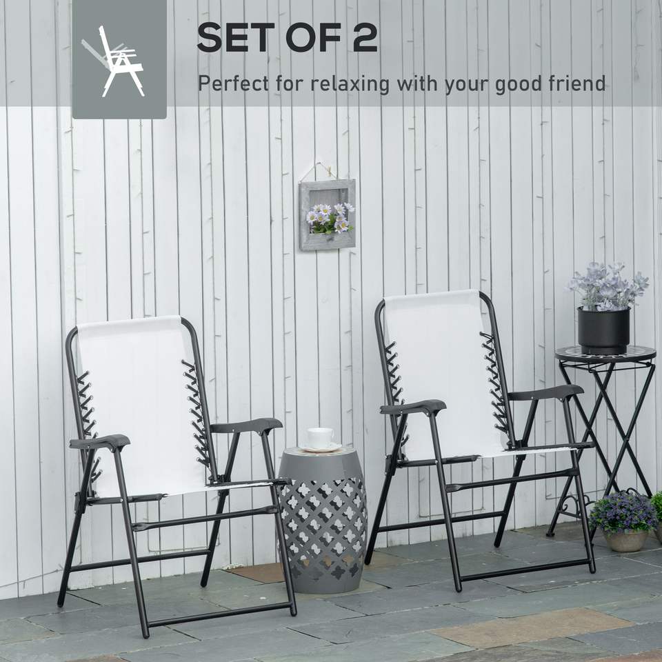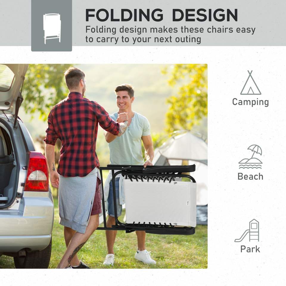 Set di 2 Sedie Pieghevoli Portatili Bianco Crema con Braccioli per Patio, Piscina, Spiaggia, Campeggio e Arredamento da Esterno