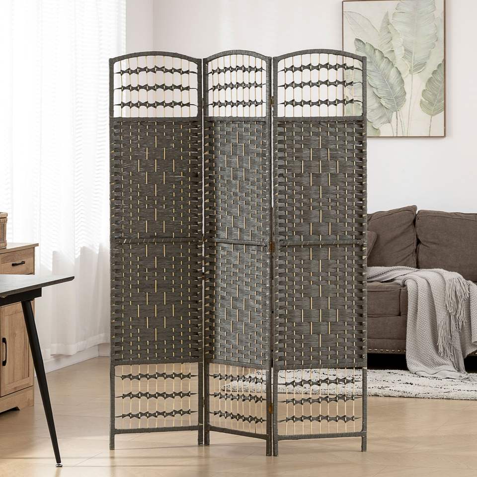 Divisorio Pieghevole Portatile a 3 Pannelli Grigio Scuro in Fibra Ondulata per Privacy in Casa e Ufficio