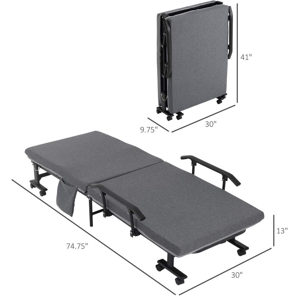 Letto Pieghevole Portatile Grigio Scuro con Schienale Regolabile, Letto per Ospiti su Ruote