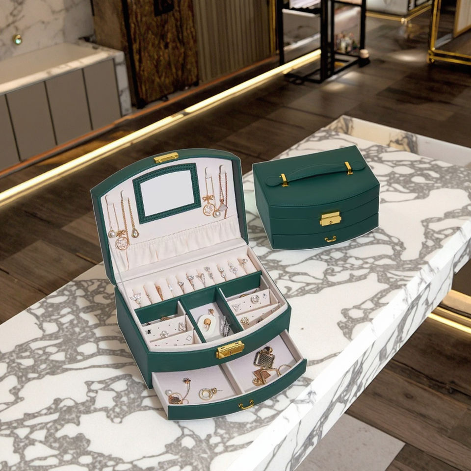 Portable Double Layer Fine Leather Jewelry Box for Little Girls Multifunctional Square Storage with Mirror Travel Jewelry Box
