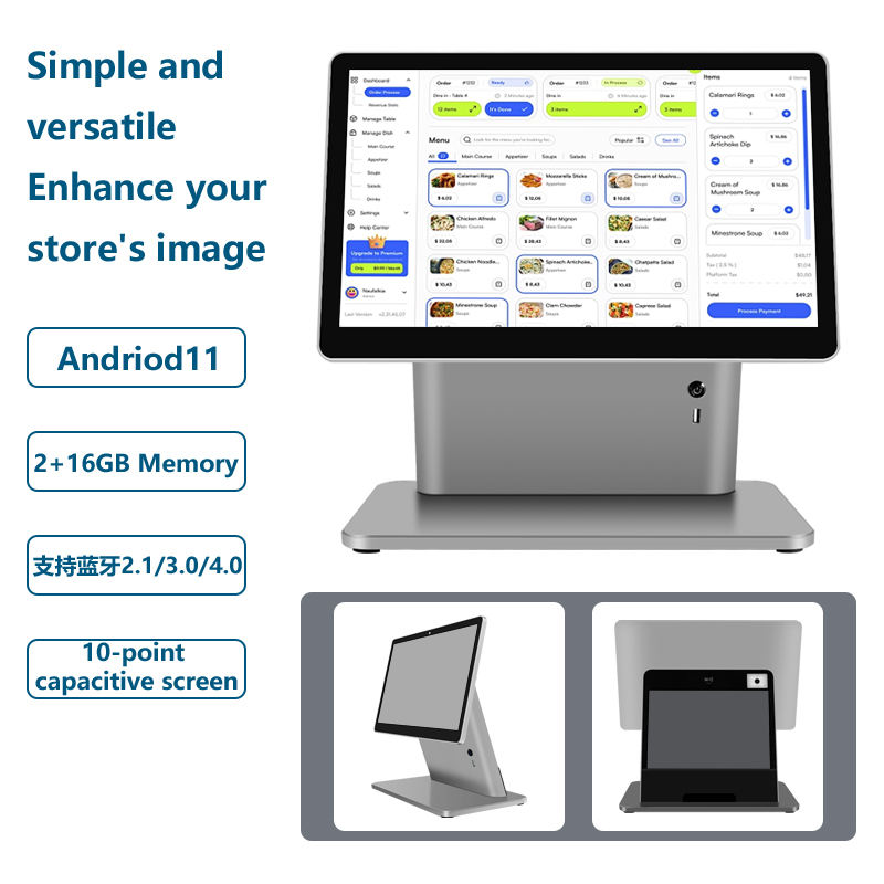 Sistema portatile Touch POS a doppio schermo con lettore di schede registratore di cassa All-in-One per soluzione di pagamento facile ristorante