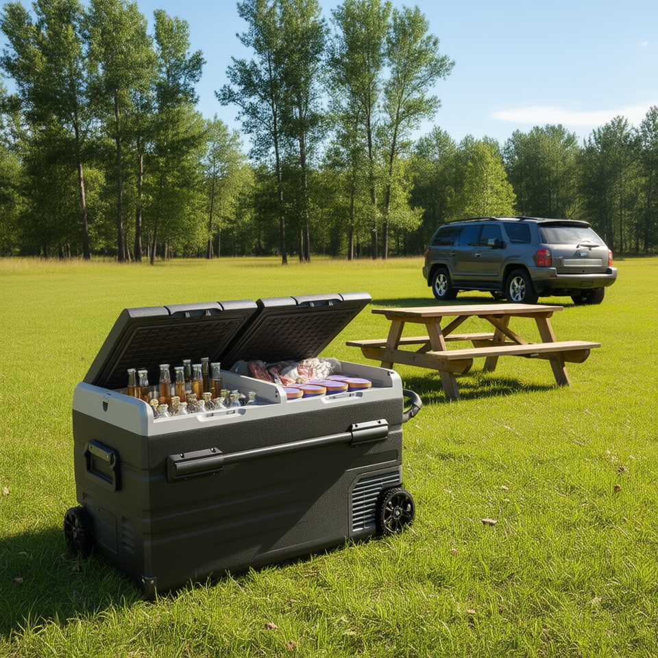 Frigorifero Portatile per Auto a Doppia Zona da 115 L con Compressore, Congelatore in Plastica con Sbrinamento Automatico, Alimentazione Veicolare