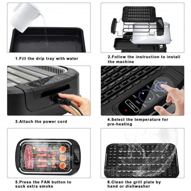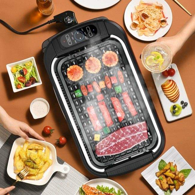 Griglia Elettrica Portatile con Estrattore di Fumo Turbo, Griglie e Piastre Elettriche Senza Fumo