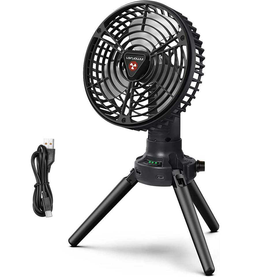 Ventilatore a Torre Portatile Pieghevole con Oscillazione a 270 Gradi, Power Bank di Emergenza per Campeggio e Uso Personale, Ricaricabile