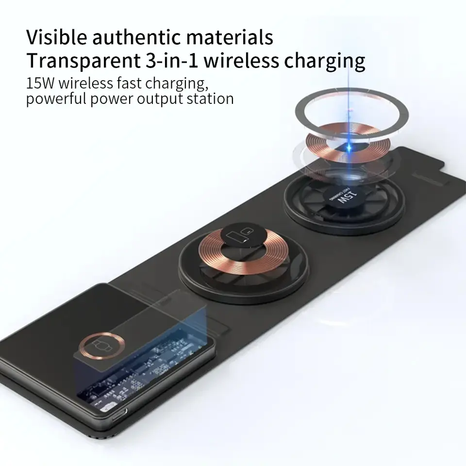 Caricatore Wireless portatile pieghevole 3-in-1 da viaggio con magnete potente 15W ricarica rapida con copertura in tessuto PD funzione di protezione OTP