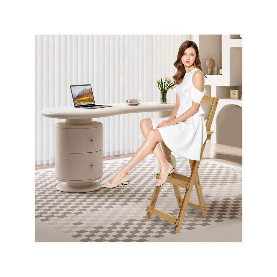 Portable Folding Bamboo Bar Stool with Backrest Footrest Solid Wood Frame Easy Assembly for Home Kitchen Island Breakfast