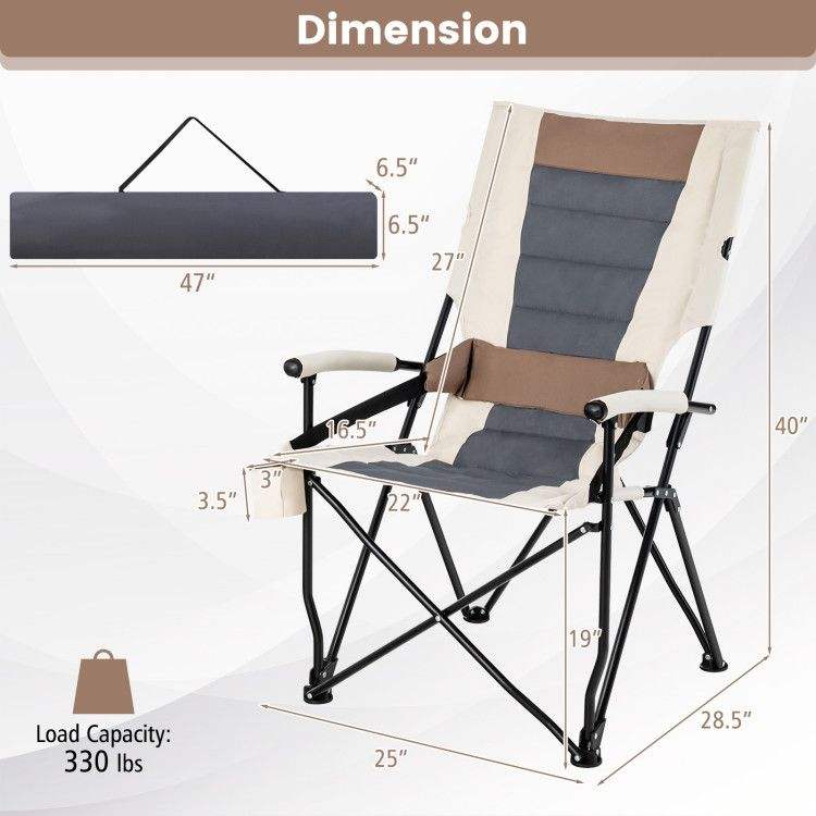 Sedia da Campeggio Pieghevole Portatile con Portabicchiere Integrato, Braccioli e Cuscino Lombare