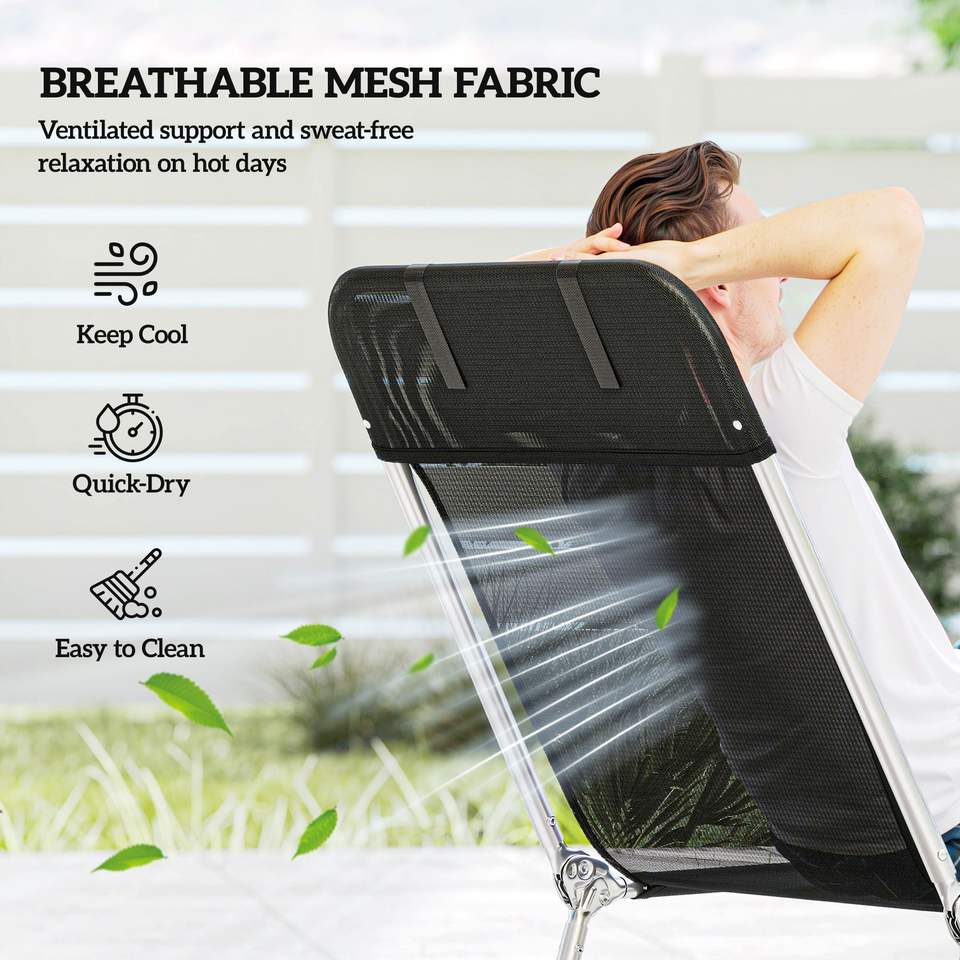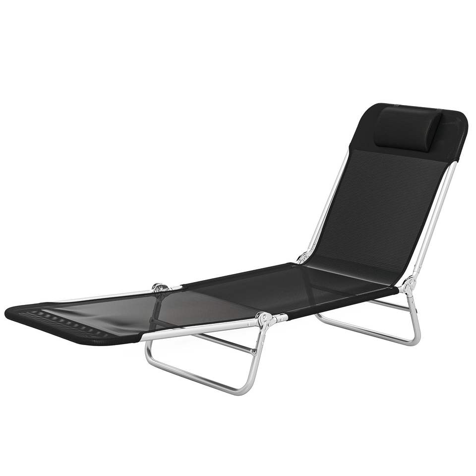 Sdraio Pieghevole Portatile con Schienale Regolabile e Cuscino per Spiaggia, Piscina e Patio - Nero