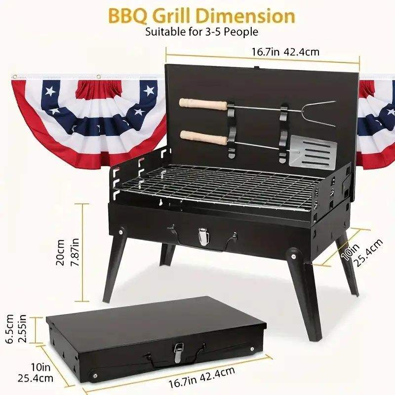Griglia a Carbone Portatile Pieghevole con Design Antivento a Forma di Cassetta degli Attrezzi, 3 Modalità di Altezza per Campeggio e Picnic
