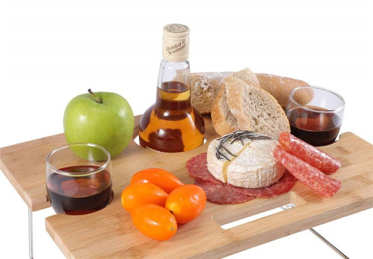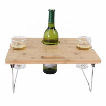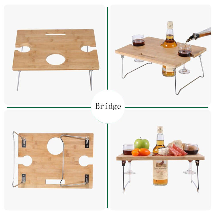 Portatile pieghevole gambe di bambù colazione letto tavolo vassoio di snack con bottiglia di vino supporto di vetro per picnic all'aperto spiaggia parco