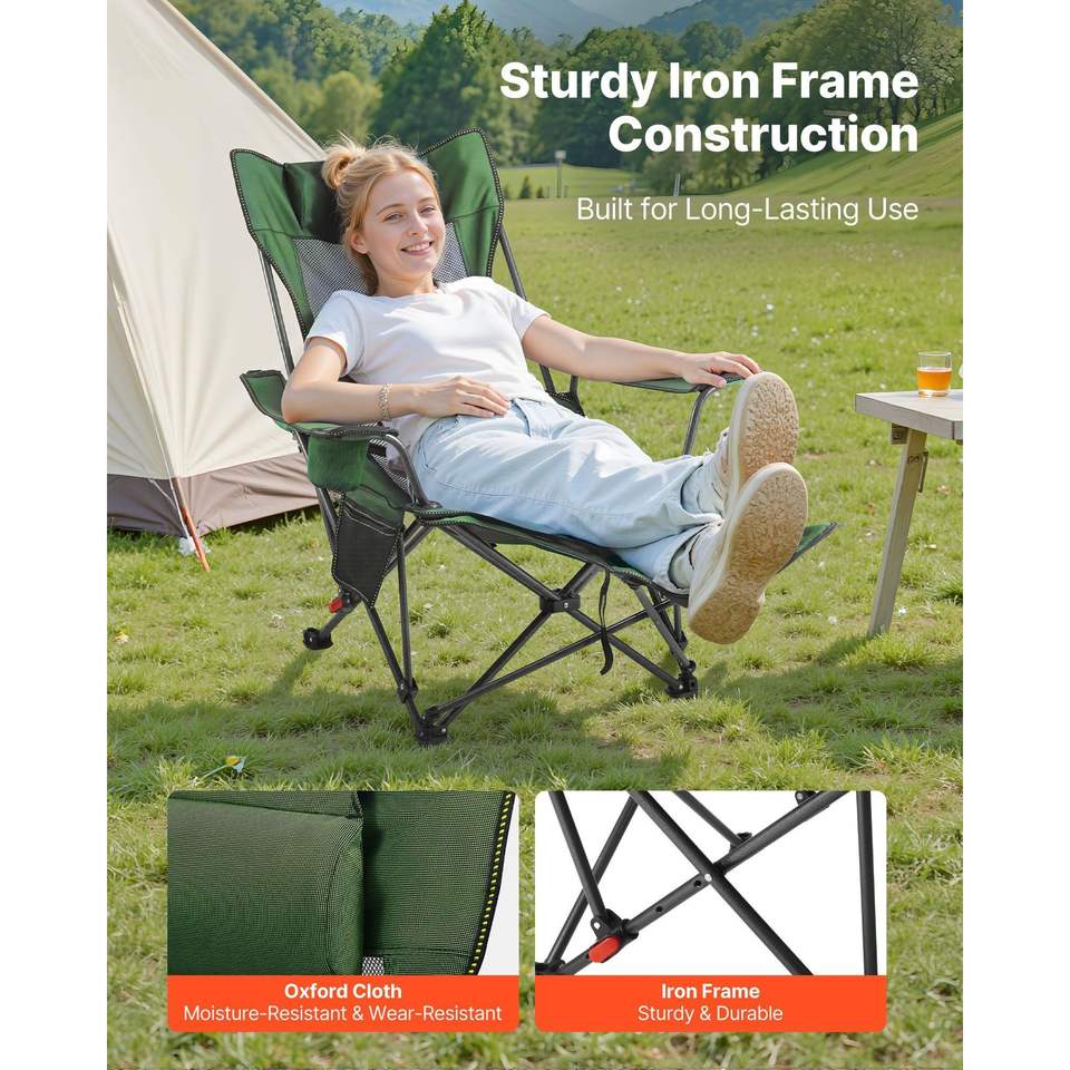Sedia da Spiaggia Pieghevole in Rete con Funzione Reclinabile, 4 Posizioni Regolabili per Adulti, con Poggiatesta e Poggiapiedi