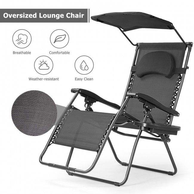 Sedia a Sdraio Pieghevole Portatile con Tettuccio Parasole e Portabicchieri per Uso in Spiaggia
