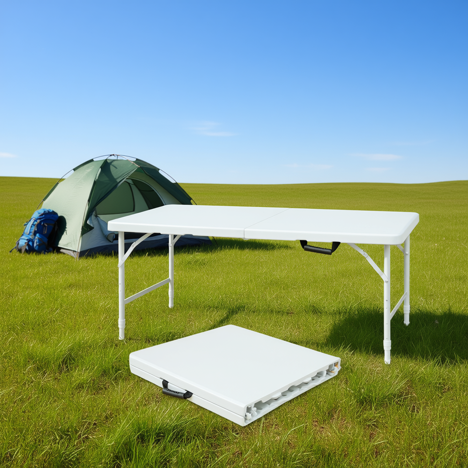Tavolo Pieghevole Portatile 4ft Rettangolare in Plastica per Campeggio Esterno Bianco Design Leggero per Uso Interno