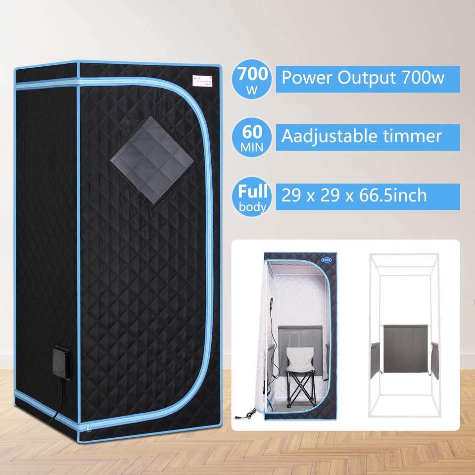 Tenda Sauna a Infrarossi Portatile Nera a Grandezza Naturale con Tappetino Riscaldante per Piedi e Telecomando per Spa Personale Domestica, Sedia Pieghevole Inclusa