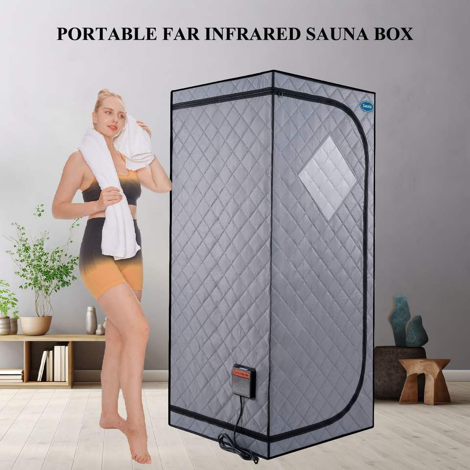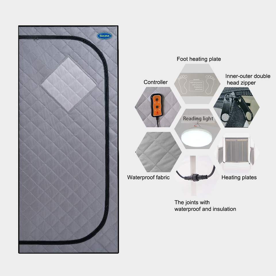 Tenda Sauna a Infrarossi Portatile Grigia a Grandezza Naturale con Tappetino Riscaldante per Piedi e Controller, Design Pieghevole per Spa Personale Domestica