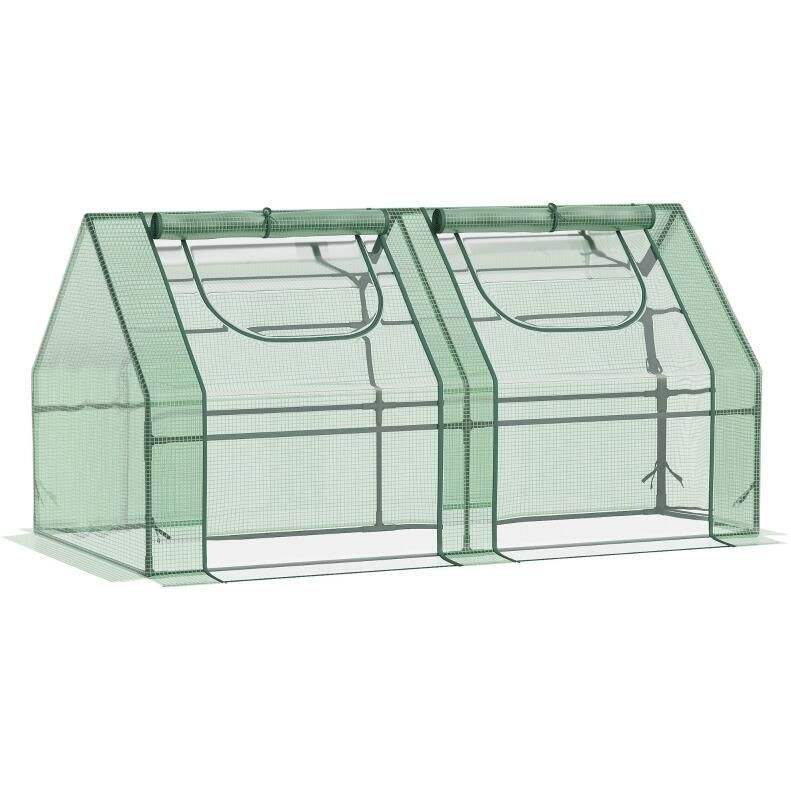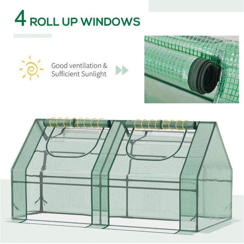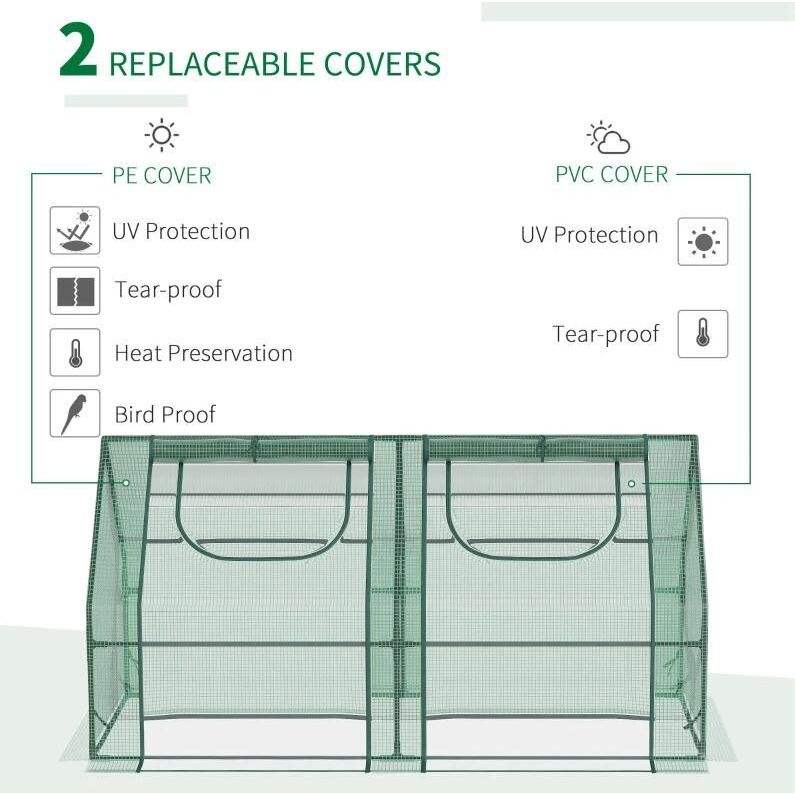 Serra da Giardino Portatile con Due Coperture in PE/PVC, Telaio in Acciaio, 2 Finestre Avvolgibili - 6 X 3 X 3 Hot House