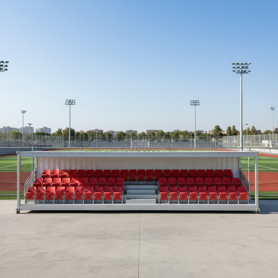 Tribuna Portatile Prefabbricata in Container, Panchine per Calcio 20ft 40ft, Tribuna per Spettatori Sportivi per Scuole e Parchi